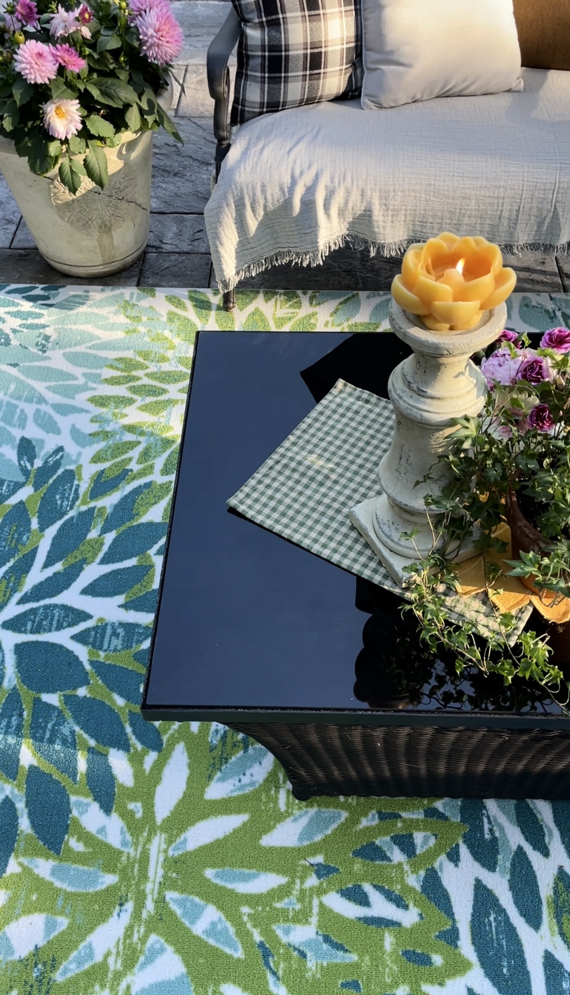 - Tropical Plant Design: The intricate pattern of tropical plants and vibrant colors creates an exotic and inviting atmosphere in any outdoor space.
